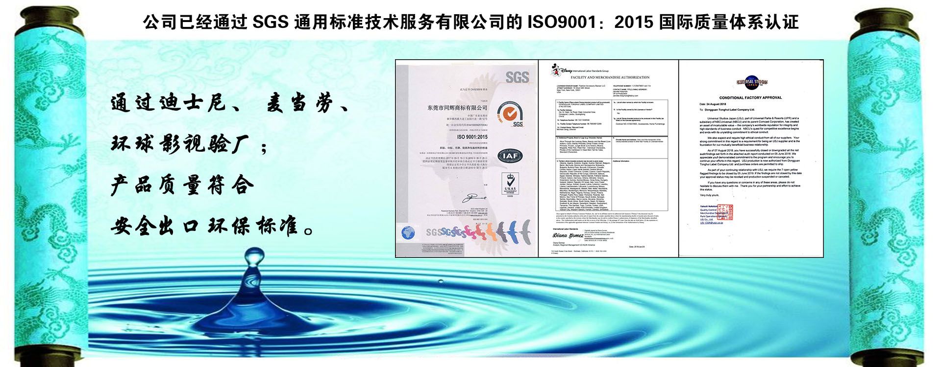 東莞市同輝商標(biāo)輔料及包裝印刷有限公司是一家專業(yè)從事商標(biāo)制造、包裝印刷的企業(yè),主營生產(chǎn)和銷售:各類織嘜商標(biāo),織章,印刷商標(biāo),印嘜,標(biāo)簽印刷,不干膠商標(biāo),絲印商標(biāo),熱轉(zhuǎn)印標(biāo),無感商標(biāo),燙嘜,皮牌商標(biāo),電壓商標(biāo)、商標(biāo)帶、繡花標(biāo),布貼標(biāo)、皮貼標(biāo)、商標(biāo)吊牌,彩卡,折盒等廣泛用于各行各業(yè)。工廠經(jīng)過多年的發(fā)展與開拓,規(guī)模日益發(fā)展壯大。從設(shè)計制作、工程研發(fā)、生產(chǎn)制造、產(chǎn)后加工、品檢、物流配送、售后服務(wù)等一套完整的優(yōu)質(zhì)服務(wù)體系,及優(yōu)秀的經(jīng)營管理團(tuán)隊。已通過SGS ISO9001:2008(新版是2015版)國際質(zhì)量體系認(rèn)證,產(chǎn)品質(zhì)量符合各國安全出口環(huán)保標(biāo)準(zhǔn)。承蒙國內(nèi)外客戶的大力支持,目前已有許多國際著名品牌定點(diǎn)授權(quán)我公司生產(chǎn),并是通過全球迪士尼FAMA認(rèn)證驗(yàn)廠,麥當(dāng)勞驗(yàn)廠,環(huán)球影視驗(yàn)廠的供應(yīng)商,是各行業(yè)值得信賴并具有實(shí)力的合作伙伴。